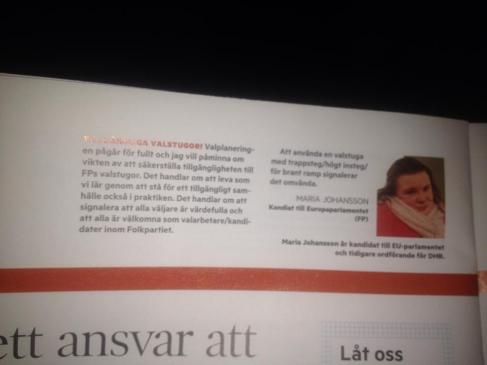 Påminner i dag i en notis i Folkpartiet Liberalernas tidning NU om att säkerställa att supervalårets valstugor är tillgängliga.